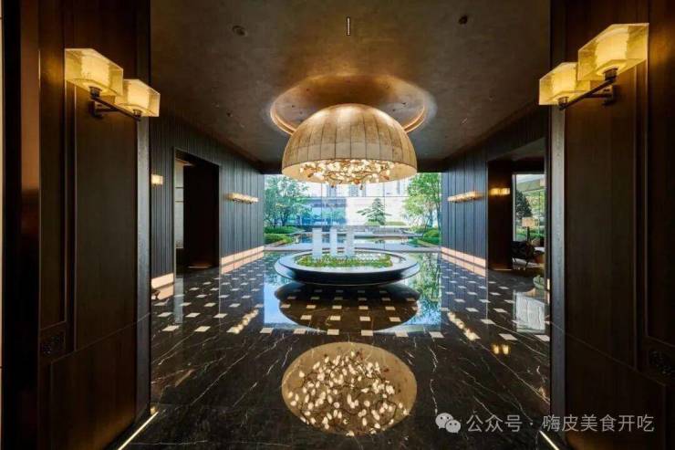 桂月观棠汲取传统东方对称美学,大堂两侧设计禅意水系,寓意流水而兴;前厅中轴展开,巨幅琉璃质感的屏风,尽显尊崇。香槟金质感的龙鳞吊顶,寓意龙腾祥瑞,彰显鼎序生活礼制。