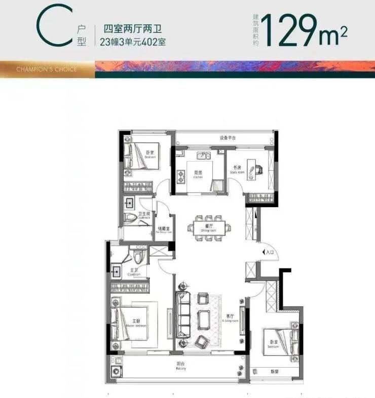 有106平方米的三房、116平方米的四房、129平方米的四房以及152平方米的4+1房等多种户型供您选择。