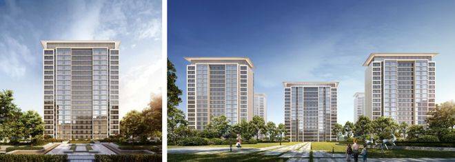 外立面采用经典时尚现代主义风格:通过温和的色彩搭配、简练的横向线条、黄金比例的立面比例、极简抽象的建筑符号、建筑顶部的飘板,呈现一个现代风格和艺术气质结合的高品质社区。