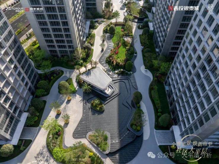 私密围合布局:8 幢原生大平层采用围合式设计,最大化保障了居住的私密性,为业主营造出宁静且专属的生活氛围。