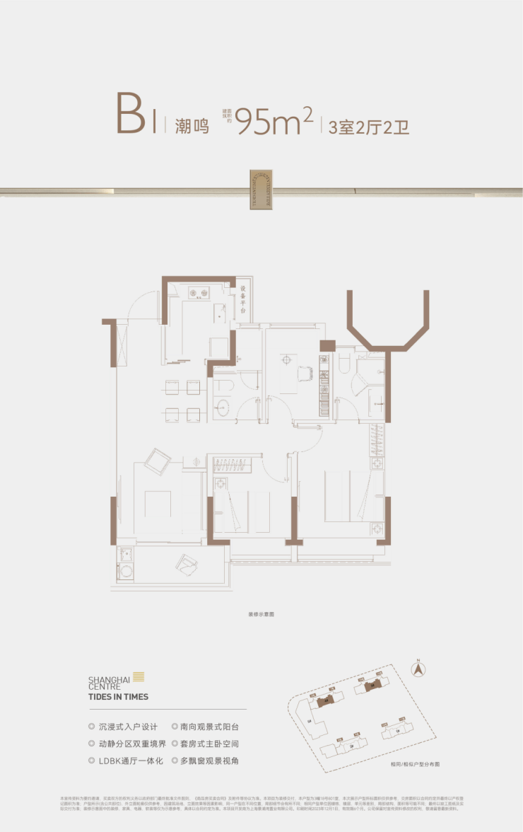 建面约95-97㎡3房2卫,2卫的设计保证了早晚高峰抢厕所的问题,并且主卧套房设计也保证了主人的私密空间。