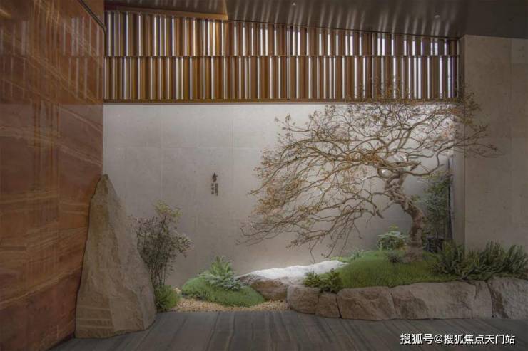 越秀外滩樾的公区庭院非常精致,其精心打造充满禅意的山水庭院。
