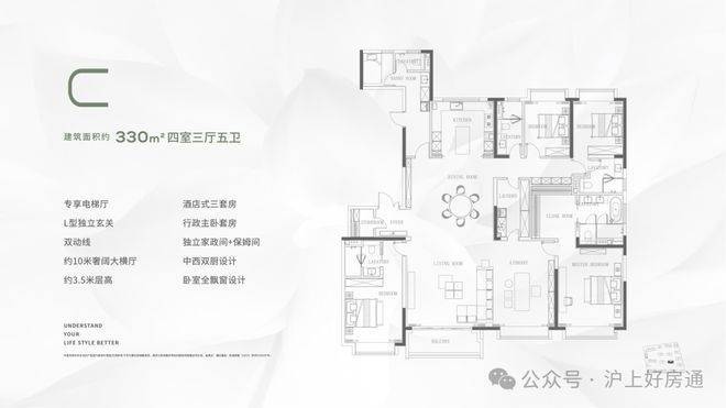 高端产品系:属合生「」首个滨江作品,均价12.1万/㎡,主力户型226-330㎡,配置3.3米层高、等顶豪标准。56