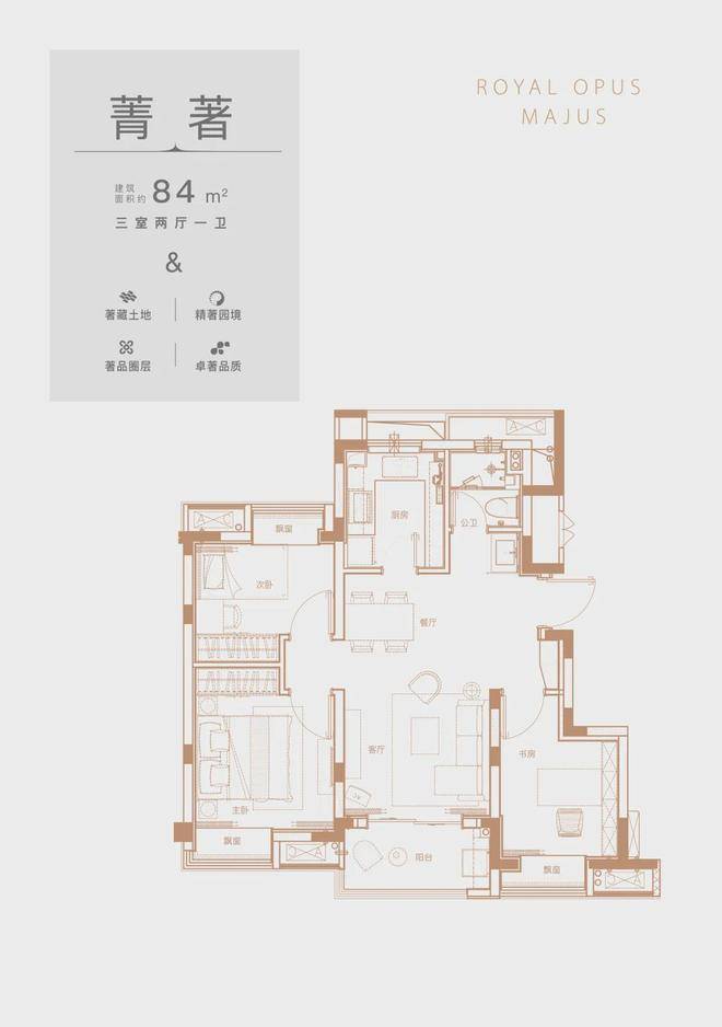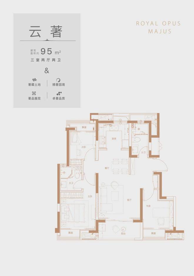 约2.7米宽阔阳台,一览东方美学墅区景致;餐客一体,优享挚爱美味与生活美好;南向精致居室,全卧观景飘窗,夕阳与晨曦在枕间悄然停落,尽揽上层人生景致。