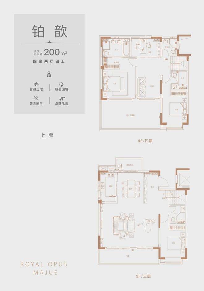 上叠:118(3室2厅3卫),150(4室2厅3卫),200(4室2厅4卫)