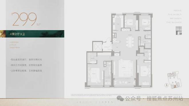 1.四卧均带独立卫浴,南向双卧为「超级套房」