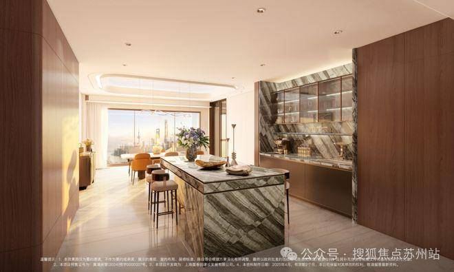 更细节的是,西厨吧台采用“东方木纹石材”,独特纹理与质感让每一次咖啡手冲都成为“生活美学的展示”。