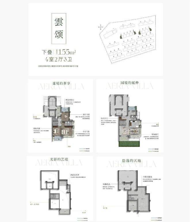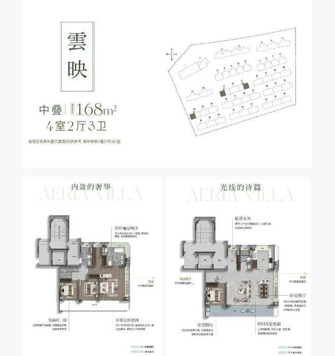 整个项目容积率仅约1.5,远低于常规住宅项目,规划了叠墅和小高层两类产品,建筑布局充分考量视野与私密性,确保每家每户都能享受充足的采光与景观资源。