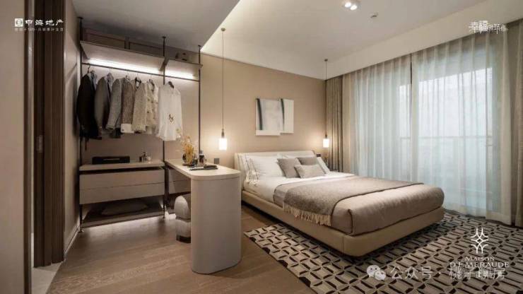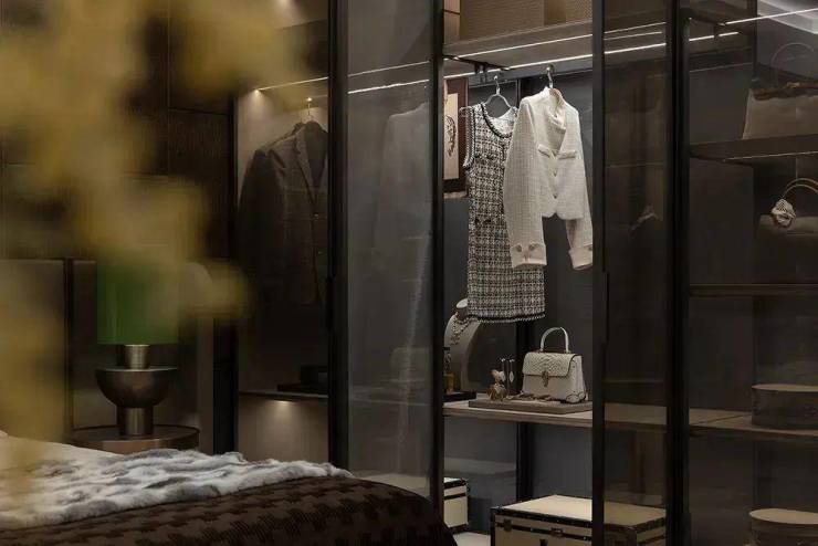 套房式主卧设计配备卫生间、衣帽间,在家中感受酒店套房式的空间尺度,满足主人对个人空间的需求,可以独自享受自己的宁静与舒畅。