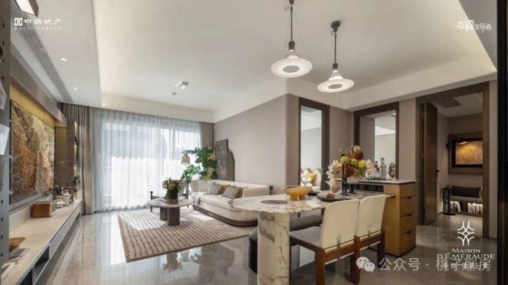 强调公区的开放性和空间动线的优化,最大化释放活动面积,不仅有开阔的视觉体验,也可以在家中自由穿梭,方便与家人互动,提升居住的趣味性。