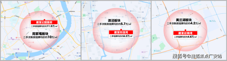比如周家嘴路的建发公园首府二手挂牌均价11.5万/㎡,高出其他同龄板块次新小区近1.5万/㎡。再比如泗泾、美兰湖等板块的建发作品,挂牌价同样能高出同板块次新小区10-15%。