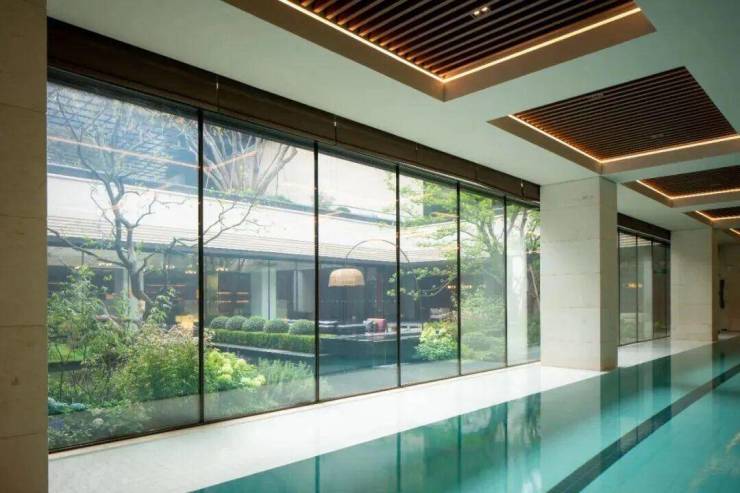 其内部涵盖了健身、泳池、私宴、茶室、下沉庭院等空间,打开了丰富的社交场景。