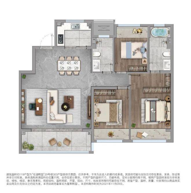 洋房:119m²(3-2-2)、141m²(4-2-2)