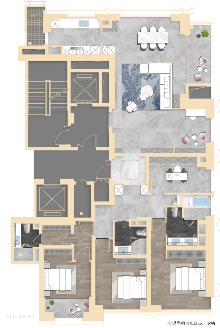 超高层住宅:1号地块规划3栋165米超高层,刷新黄浦天际线,户型从94㎡到402㎡,覆盖刚改到家族式居住需求。