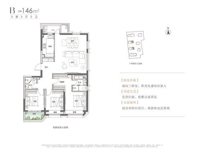 产品:规划7栋11-13层小高层(共251套)及3套别墅,户型建面104-220㎡的2-4房,层高3-3.15米,采用无连廊设计提升私密性。