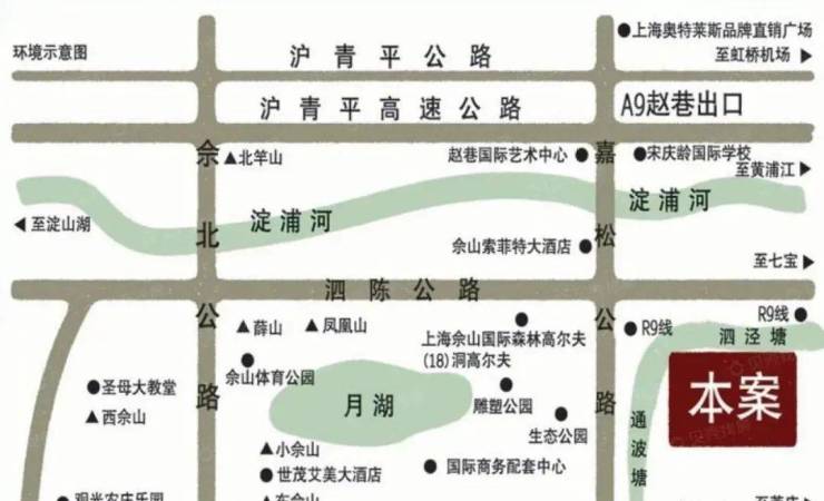 距离地铁站9号线佘山站1.2公里,附近主干道有嘉松公路、泗陈公路和沪昆、沪渝高速,驱车40分钟直达市中心徐家汇、新天地、古北等腹地。
