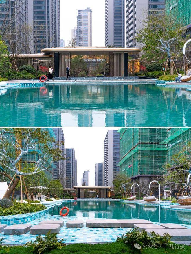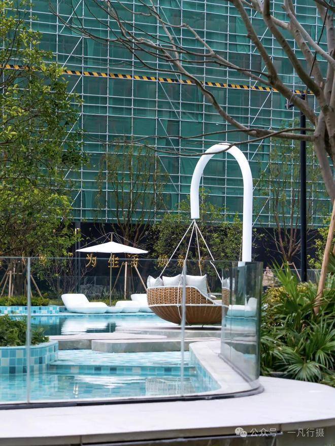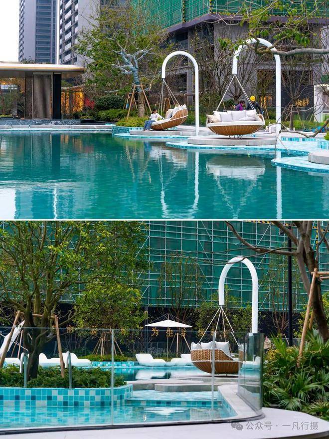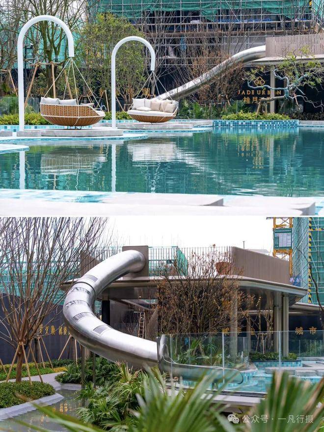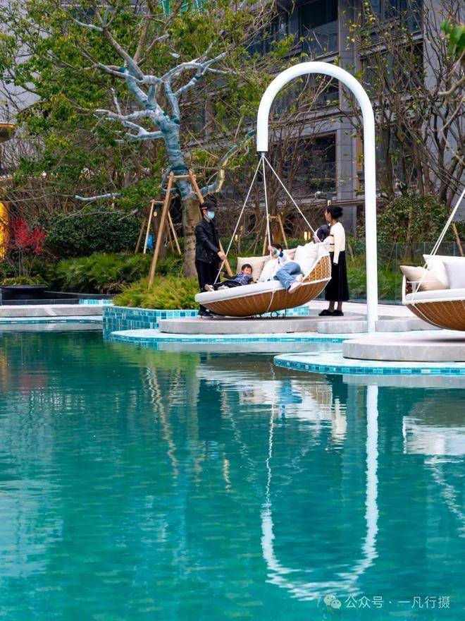 月桂云翠园打造无边界泳池,在露天泳池的周围,植入了更丰富多样灵动空间。面向低龄儿童的戏水池、与水面同高的亲水吧台、还有水上滑梯、星空露台、秋千吊床、草坪躺岛等等。