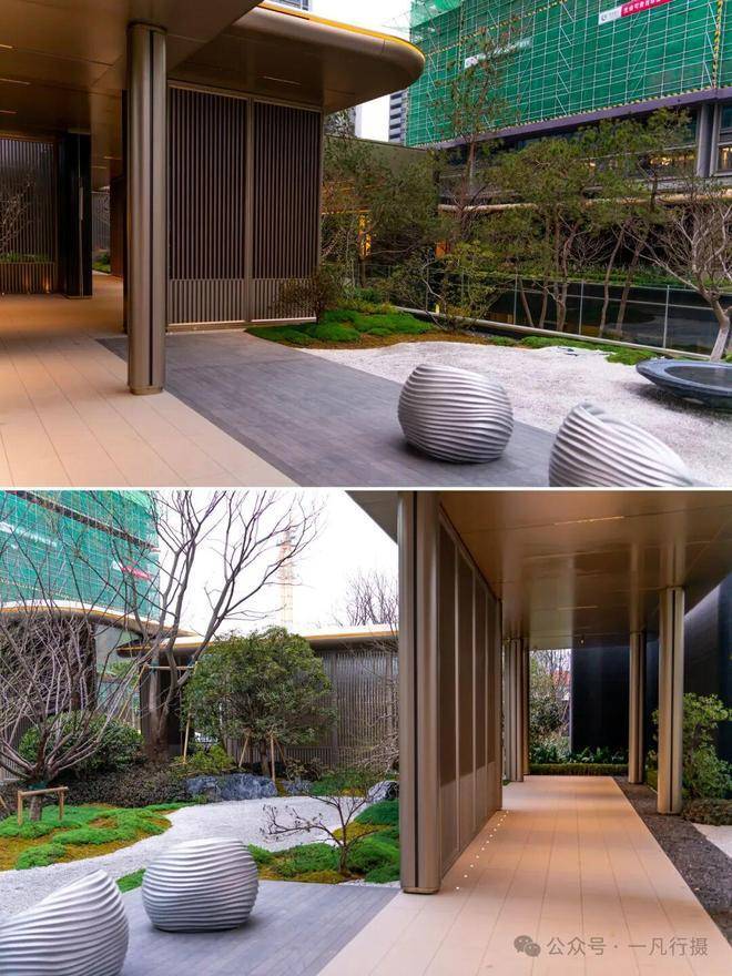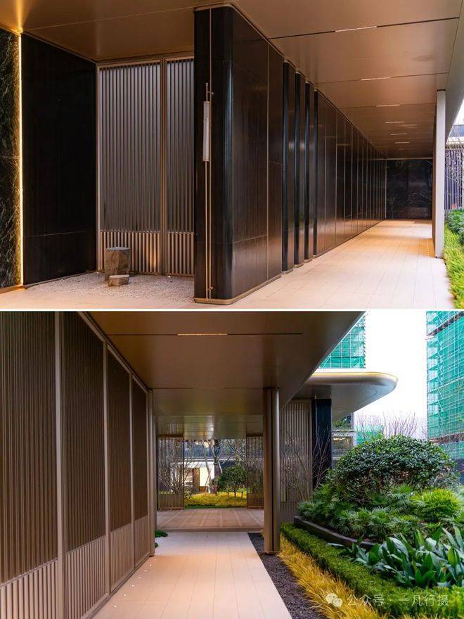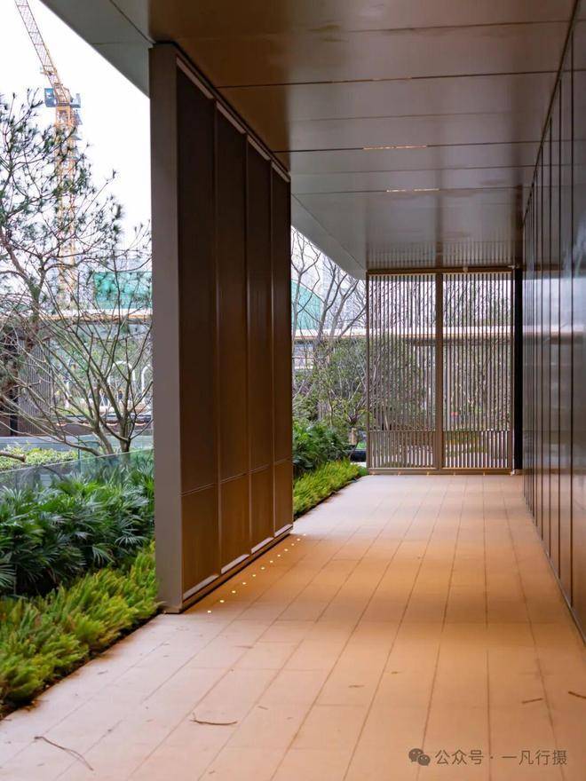绿城桂月云翠园将连廊与建筑紧密相连,运用动线迂回、空间开合转折的方式,将景观节点与会所架空层无缝连接,为园区生活创造了更多的便捷与舒适。