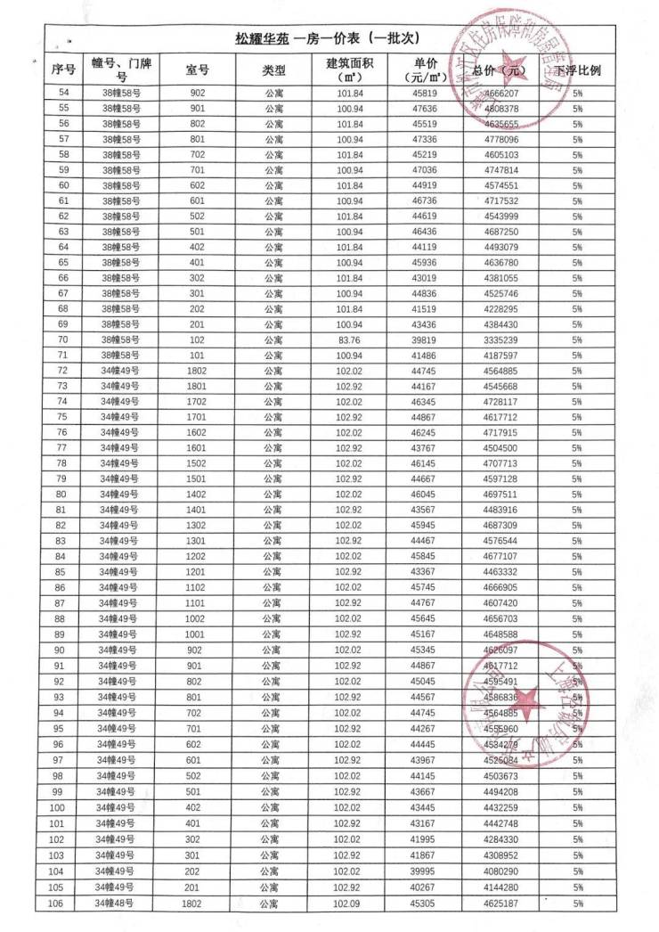 「一房一价表」