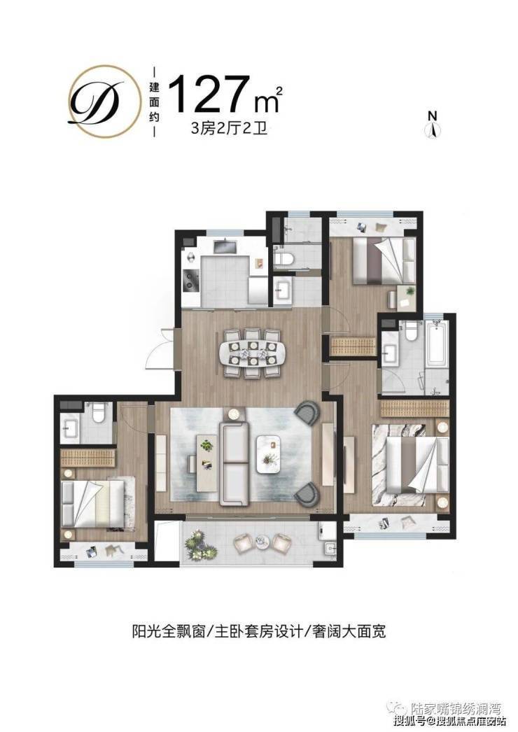 大面宽设计,多开间朝南,多飘窗设计,享受阳光的无私照拂,主卧套房式设计,礼遇尊崇生活。