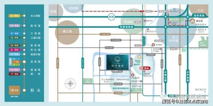 🚇轨交:周边16/18号线双轨交,项目距18号线航头站约 1.6km。项目距16号线航头东站驱车10分钟内到达;航头东站到龙阳路仅5站。双轨串联起浦东重要地标,国际文化地标-花木(浦东图书馆、博物馆等)、国际旅游地标-迪士尼乐园、国际CBD地标-前滩、后滩、国际娱乐地标-世博等。