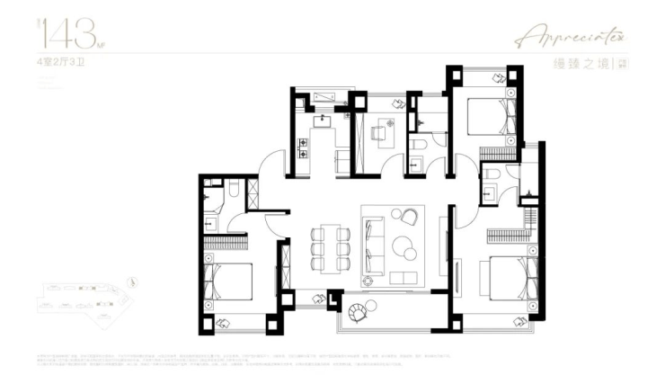 户型设计:双主卧套房,低公摊高得房率,适合改善型需求
