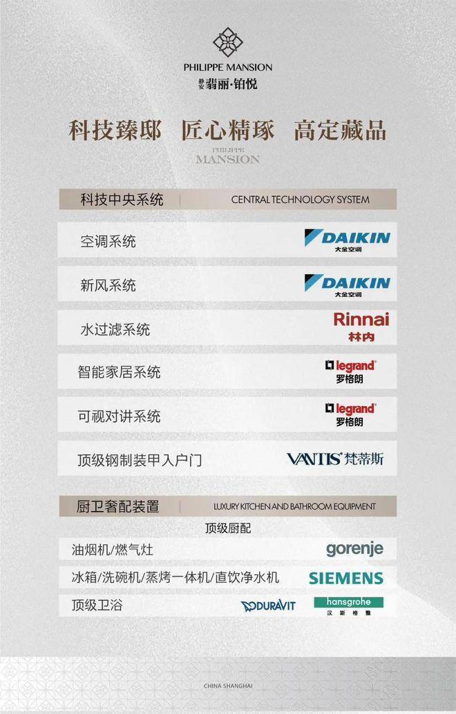 采用大金空调、大金新风系统、林内水过滤系统