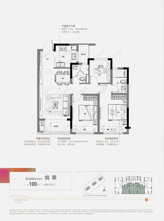 虹缤之都建面约100㎡户型图