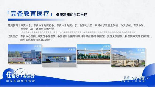 优质医疗:奉贤中心医院、复旦大学附属儿科医院奉贤院区(在建)、奉贤区中医医院、中国福利会国际和平妇幼保健院(奉贤院区)、新华医院奉贤院区(试运营中)