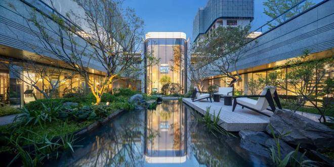 又如,园林景观方面融合各种类型的植被、观景会客厅、大面积镜面水景、曲苑回廊等,打造难得一见的诗意园境。