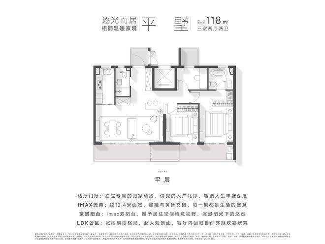 建筑风格:公建化立面、宽幕窗景、IMAX观景阳台
