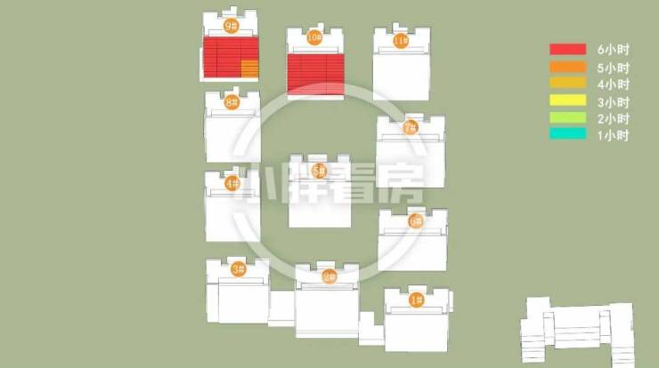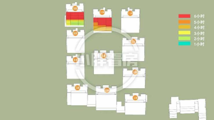 冬季:9#10#低层受遮挡。就具体遮挡时间而言,9#除傍晚外其余时间段均受遮挡。10#主要在上午和下午受7#8#遮挡。