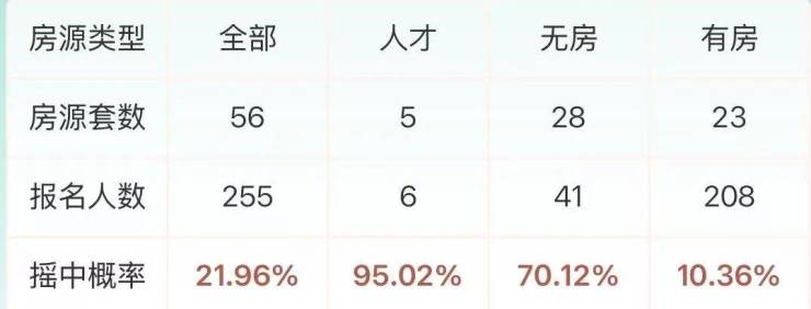 最终,项目84套房吸引了266组家庭登记,中签率31.58%。其中人才2组,有房家庭223组,最低中签率18.39%!
