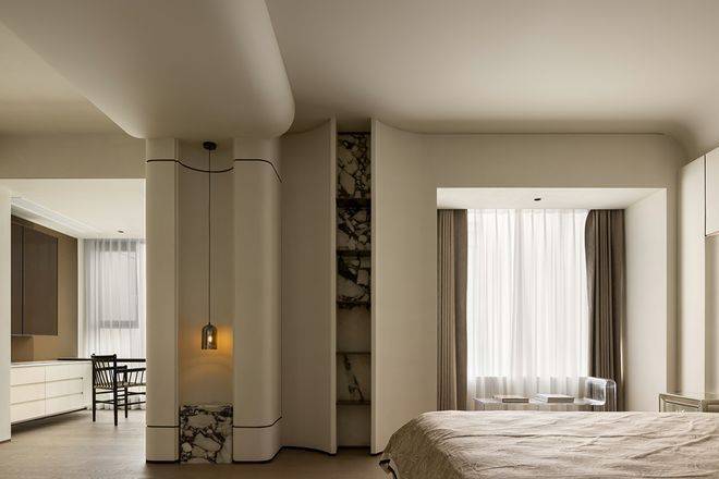 潮映望月府的精装也是3000元/㎡装标里的“高配”,在产品“神仙打架”的当下,依旧十分出挑。全屋墙纸和客厅的岩板背景墙都是潮映望月府的交付标准,智能马桶也是标配,减少业主后期软装升级烦恼。
