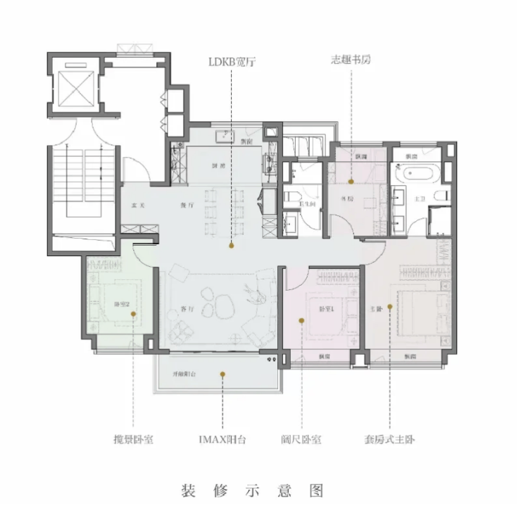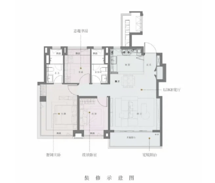 户型上,设计拔尖,LDKB一体化,客餐厅空间阔绰,完全可以在客厅设计出一个X空间,用作瑜伽、学习、钢琴等等功能,价值直接加倍!