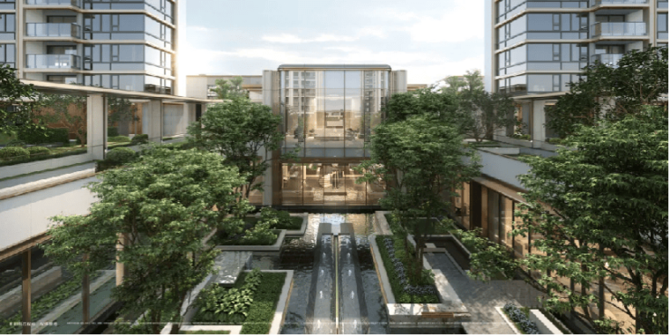 其次,小区的中央,将打造约180米长中轴景观带,贯穿整个社区,将鎏金门庭、下沉式会所、风雨连廊、中心水景都一路有机地串联到一起。