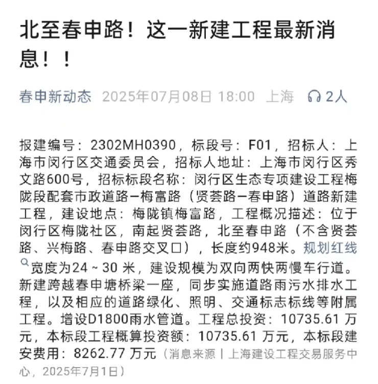 不仅连通地铁的梅富路桥进入了招标阶段,隔壁小区的名校也正式落地,另外项目实景示范区还即将开放,三重BUFF叠满,让项目价值进一步强悍。