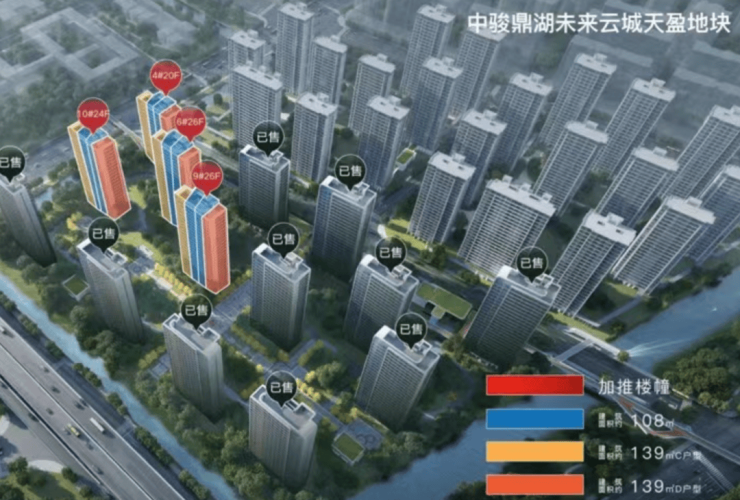 中骏鼎湖未来云城本次开盘房源为天盈4#6#9#10#共4幢371套,户型建面约108方、128方、139方,精装限价2.85万/平。