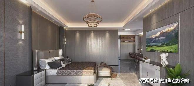 卧房应用现代简洁概念,柔美墙层淡化本身线条的硬朗感。以相互克制的布局,守护个人隐私和渲染温馨美感。