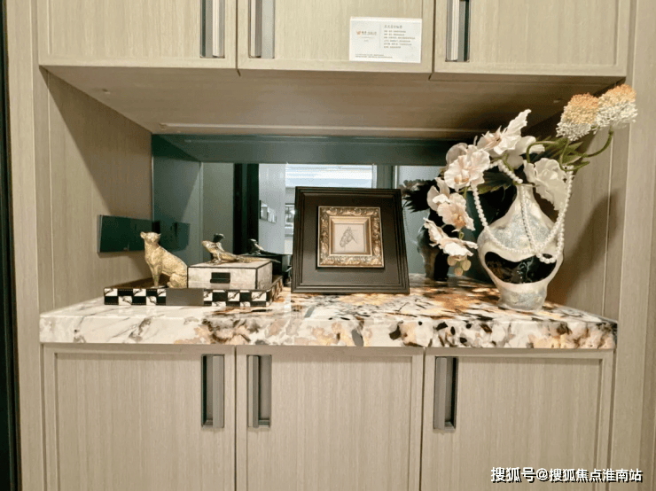 「越秀杨浦天玥」售楼处电话:400-8778-334【☎售楼处已认证】家的温情欢聚场:在餐厅区域,我们安置了一件餐边柜,其透光台面设计采用了雪山飞狐奢石材质,该餐边柜在收纳和储物功能上表现出色。
