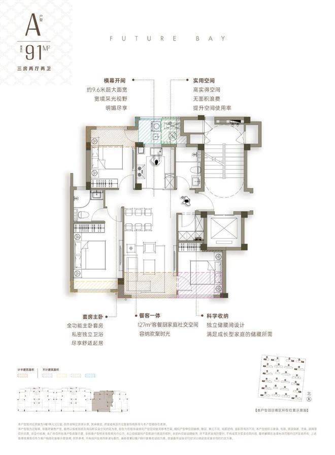 建面约91方户型: