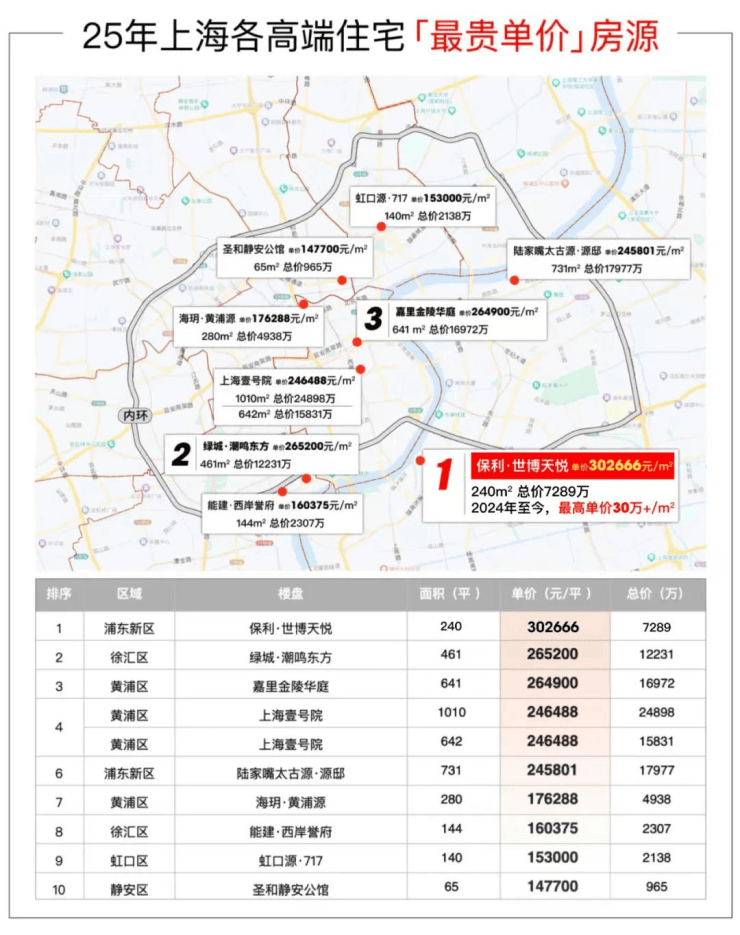 ·2025年上海目前各高端住宅「最贵单价」房源30.27万/㎡(3-22-1902,数据来源近两年开盘项目一房一价表)