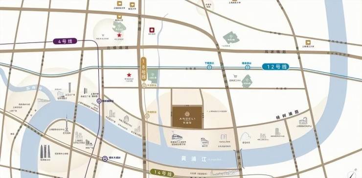 安德里的区位优势堪称得天独厚,它扎根于东外滩板块的杨浦滨江南段 CAZ 中央活力区,稳稳占据内环内的核心地带,与黄浦江的直线距离仅 300 米,具体坐落于杨树浦路与眉州路的交汇处。这一黄金位置,让安德里既能尽享临江的开阔视野与湿润江风,又能快速融入城市内环的繁华生活圈,可谓是闹中取静的理想之地。