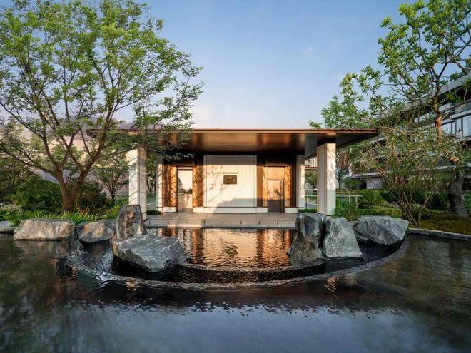 安璞轩以绍兴台门建筑为灵感,外立面在保留安系安缦金隔栅的基础上,增加香榧木纹铝板、东方大挑檐、黑钴蓝石材等元素,勾勒出高定轮廓。安.Lounge会馆更有宴、展、茶、玩、研五大服务模块,为业主提供多元化圈层社交场景。双安联动,长期占据绍兴市三区低密项目总金额TOP1,以硬核业绩印证安系产品的市场号召力。