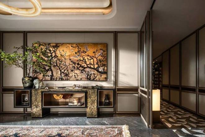 设计理念:融合苏州园林曲径通幽与现代大平层设计,主入口“凤起冕旒”以古代礼冠为灵感,景观设计借鉴吴门画派意境