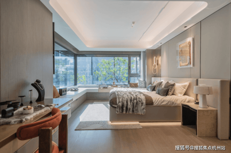 豪华酒店级别的主卧,同样配置了270°转角飘窗: