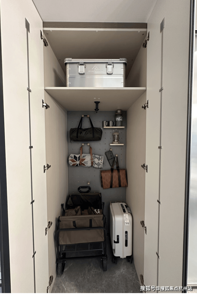 建面约144㎡洋房,一梯两户,电梯双开门, 玄关位置,单独做有储藏空间,可以将大件的行李箱、滑板车等等置入: