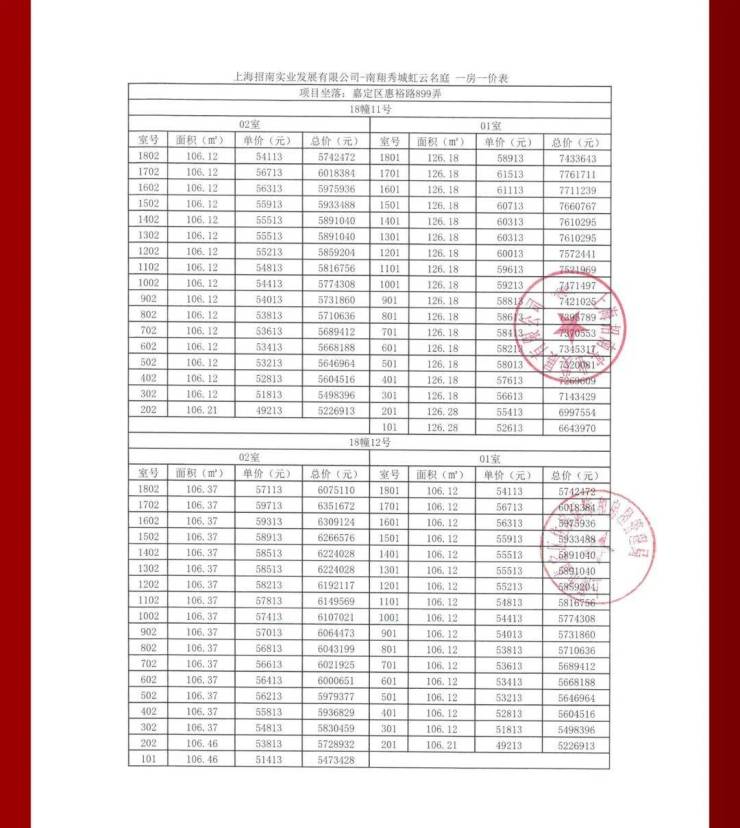 项目一房一价表