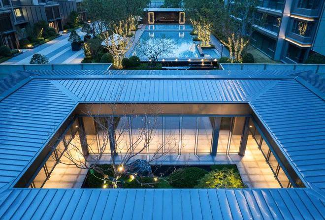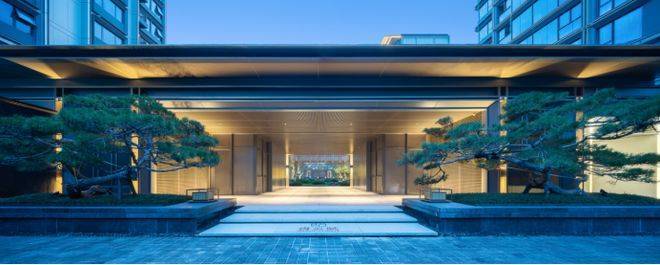 尚云赋的南侧主入口,重檐门庭、金属格栅、意趣昆石,搭配约70万珍稀古树,还原宋画中深宅大院的威仪。约57米恢弘尺度,媲美南京总统府门庭气度。东侧主入口,单是两株苍劲黑松,价值就达百万。其门头投入之重,可以想见。