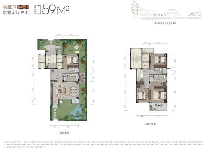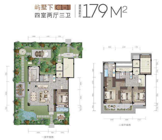 云檐里150-184m²户型全部为四房两厅三卫设计,地暖空调一应俱全,还有超大面积的私家花园。以约168m²下叠边套为例,约100+m²的私享花园庭院,以270°环绕的排布,让生活与自然融为一体。